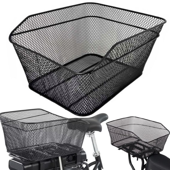 • Duży kosz na rower metalowy koszyk rowerowy na bagażnik mocny przykręcany