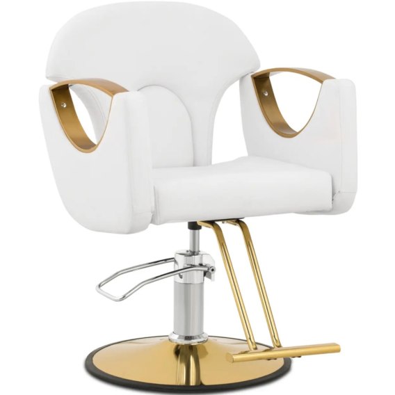 Fotel fryzjerski BARTON WHITE pozwoli stworzyć wygodną przestrzeń dla klientów i dodać stylu salonowi. Subtelny design w białej kolorystyce wpasuje się w każdy wystrój. Fotel fryzjerski z podnóżkiem i obitym oparciem zachwyci gości maksymalnym komfortem. Czy to w salonie fryzjerskim, tatuażu, czy gabinecie kosmetycznym. Rama fotela fryzjerskiego wykonana jest z wytrzymałej i eleganckiej stali nierdzewnej. Solidna konstrukcja bezpiecznie znosi obciążenie 180 kg i zapewnia krzesłu wsparcie, a także wysoką trwałość. Duża podstawa o średnicy 55 cm zapewnia dodatkową stabilność. Gładkie powierzchnie ze stali nierdzewnej podkreślają stylowy wygląd. Krzesło zapewnia ergonomiczną pozycję. Dbają o to wysokie podłokietniki oraz wysokiej jakości pianka. Wytrzymałe obicie ze sztucznej skóry można z łatwością wyczyścić. Fotel przekonuje właściwościami pyło- i wodoodpornymi. Wysokość fotela można łatwo ustawić w zakresie 55 - 65 cm za pomocą pompy hydraulicznej. Krzesło można obrócić o 360deg;. Pozwoli to osiągnąć optymalną pozycję roboczą, która nie będzie męczyć, nawet podczas pracowitych dni. Podnóżek zapewnia dodatkowy komfort siedzenia.