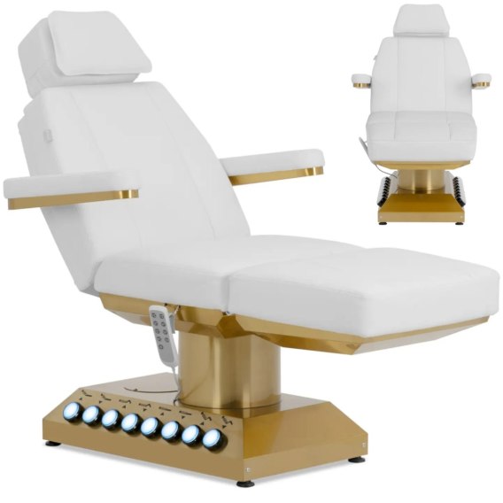 Fotel kosmetyczny SPA podgrzewany 4 silniki 200 kg MARSALA - biało złoty