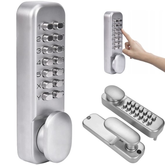 Klamka z zamkiem szyfrowym mechanicznym to praktyczne i bezpieczne rozwiązanie do drzwi wewnętrznych i zewnętrznych, niewymagające zasilania ani baterii. Dzięki manualnemu systemowi kodowania zapewnia wygodny dostęp bez użycia klucza. Mechanizm działa niezależnie od źródeł energii, co sprawia, że idealnie sprawdza się w miejscach bez prądu np. w altanach, na posesjach, w biurach czy domkach na wynajem.