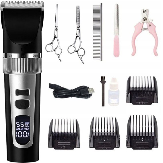 • Maszynka bezprzewodowa do strzyżenia psów zwierząt LCD 9 W 4 nasadki