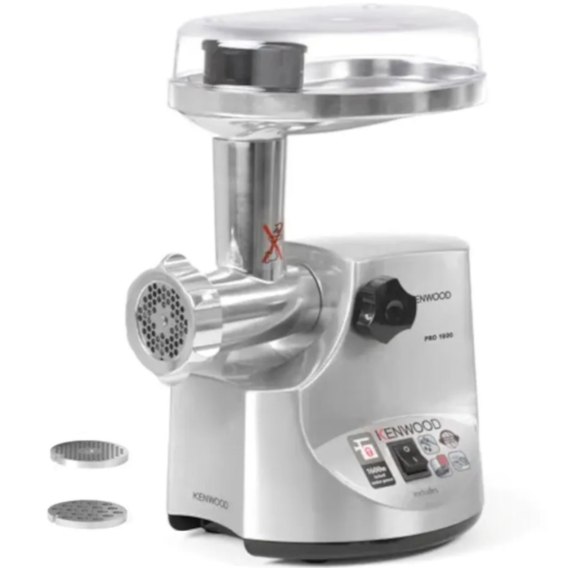 Maszynka do mięsa marki KENWOOD przeznaczona została do małej gastronomi. Jej chwilowa wydajność wynosi 120 kg/h. Korpus, śruba podająca, nóż oraz sitka wykonano z metalu. Metalowa jest także obudowa i podajnik. Kołek dociskowy wykonano z twardego tworzywa. Urządzenie posiada także bieg wsteczny. W komplecie znajdują się 3 sitka z otworami o śr. 3 mm 4,5 mm oraz 8 mm a także 2 nakładki do kiełbas i nasadka do kebbe. Pokrywę podajnika wykorzystać można jako tacka na zmielone mięso. Kluczyk ułatwia montaż i demontaż maszynki. Urządzenie nie jest przeznaczone do pracy ciągłej.