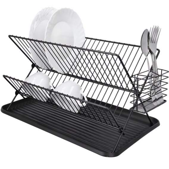 • Suszarka do naczyń ociekacz dwupoziomowy metalowy czarny