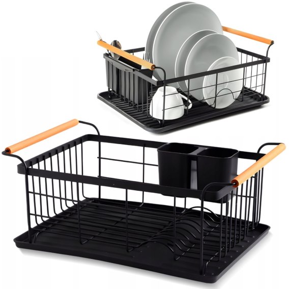 Suszarka do naczyń ociekacz metalowy z pojemnikiem na sztućce tacką - czarny