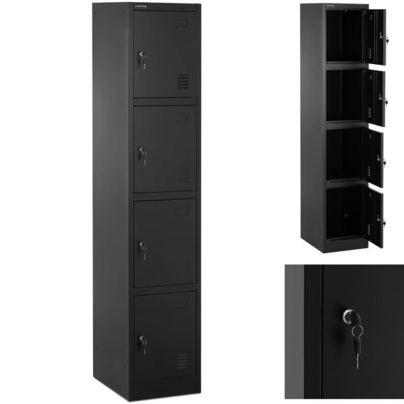 Szafka skrytkowa marki Fromm Starck sprawdzi się w szatniach czy pomieszczeniach socjalnych do przechowywania osobistych rzeczy. Solidna konstrukcja wykonana została ze stali i pokryta żywicą epoksydową. Znosi obciążenie do 80 kg. 4 oddzielne skrytki zamykane są na klucze dla ochrony przed nieupoważnionym dostępem. Każda skrytka zawiera wieszak na ubranie i półkę. Otwory wentylacyjne zapewniają optymalną cyrkulację powietrza.