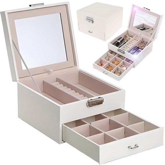- - Górne przegródki idealne na kolczyki i drobne akcesoria