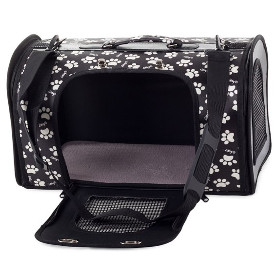 Transporter posiada dwa otwierane boki oraz przód co umożliwia wygodne umieszczenie zwierzaka oraz zamki suwakowe, umożliwiające otwarcie jej z trzech stron. Wejście główne oprócz zamka suwakowego, posiada również metalowe zapięcie.