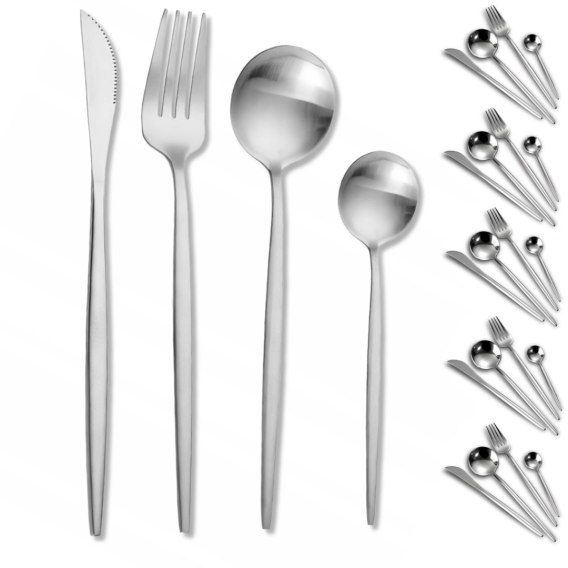 Zestaw sztućców dla 6 osób to praktyczne i eleganckie wyposażenie każdego domu. Wykonany z wysokiej jakości stali, wyróżnia się trwałością, bezpieczeństwem użytkowania oraz ponadczasowym designem w srebrnym kolorze. Gładka, lustrzana powierzchnia nadaje mu elegancki wygląd, a ergonomiczny kształt i wyważone proporcje zapewniają wygodę podczas codziennego użytkowania i wyjątkowych okazji.